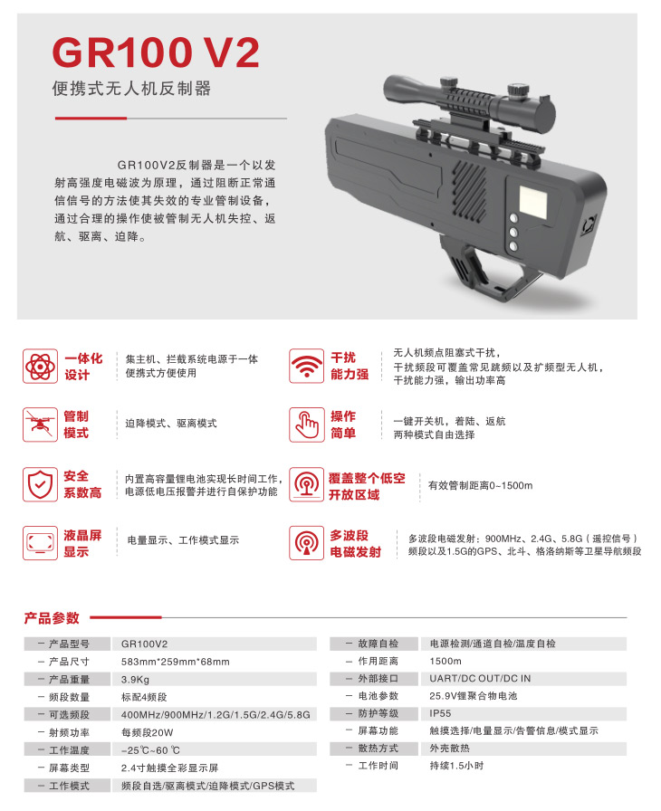 GR100 V2 便携式无人机反制器